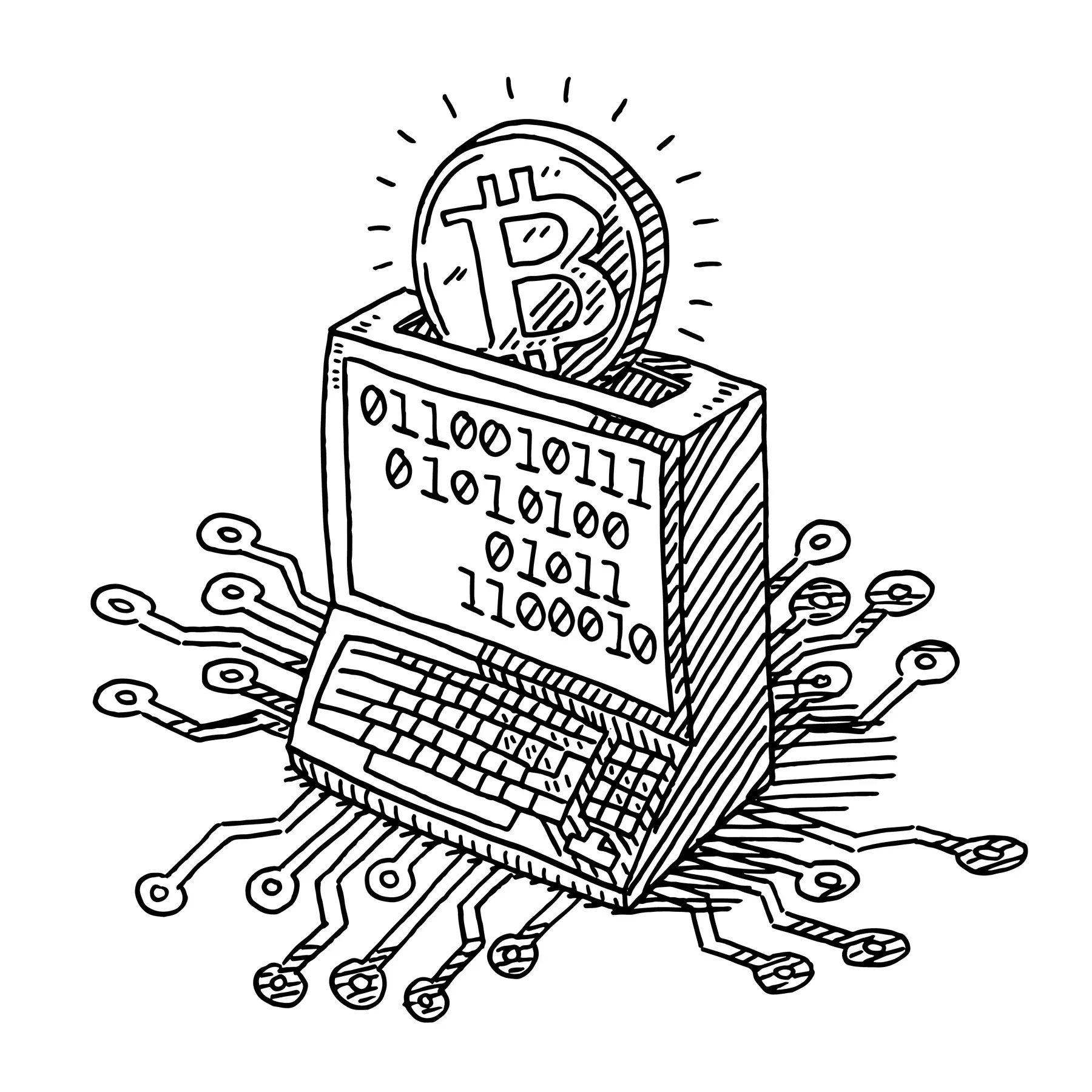 Une monnaie virtuelle créée sur la base d'un document de travail publié en 2008 et dans l'indifférence générale par Satoshi Nakamoto, un pseudonyme derrière lequel se cachent un ou des individus jamais identifiés jusque-là. Le bitcoin repose sur un réseau décentralisé d'ordinateurs qui vérifient les transactions entre deux parties, comme le feraient une banque ou une autorité centrale. Chaque nouvelle opération s'ajoute dans un registre infalsifiable, la blockchain. Détenir du bitcoin revient à posséder une clé secrète prouvant à tout utilisateur du réseau qu'on détient ce bitcoin.